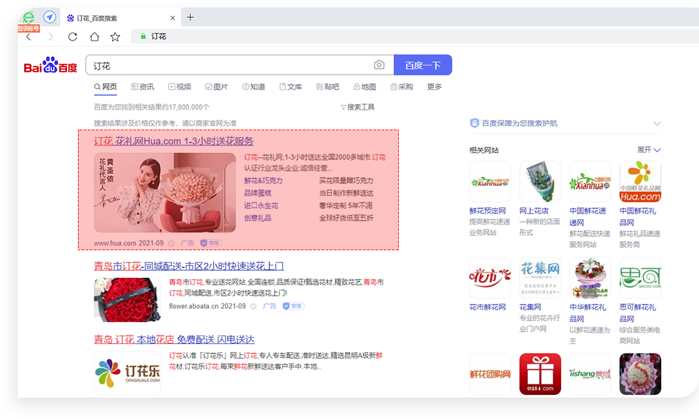 位于百度搜索結(jié)果首位,以超大黃金首屏展示位置,以文字、圖片、視頻等多種廣告形式全方位推廣展示企業(yè)品牌信息, 將最為精華和直接的品牌信息展現(xiàn)在網(wǎng)民面前,眾多網(wǎng)民也得以更便捷的了解品牌官網(wǎng)信息, 更方便的獲取所需企業(yè)資訊,是提升企業(yè)品牌推廣效能的創(chuàng)新品牌推廣模式,品牌展示矩陣覆蓋消費(fèi)者 決策全流程提供給您全方位的品牌推廣服務(wù)。